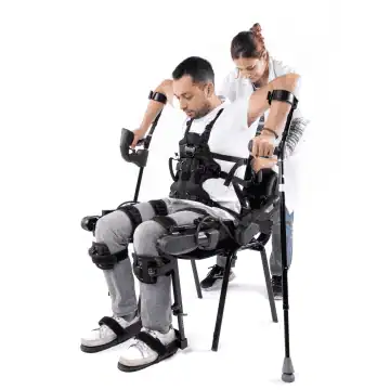 FreeGait is an active, motor-driven exoskeleton system designed to support the mobilization of individuals who have partially or completely lost the ability to walk. With adjustable femur and tibia lengths, hip width, and patient-specific connectors, the system accommodates a wide range of body profiles.