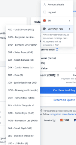 Ricevi preventivi manuali per ordini ad alto volume in 24–48 ore tramite un’interfaccia dedicata.